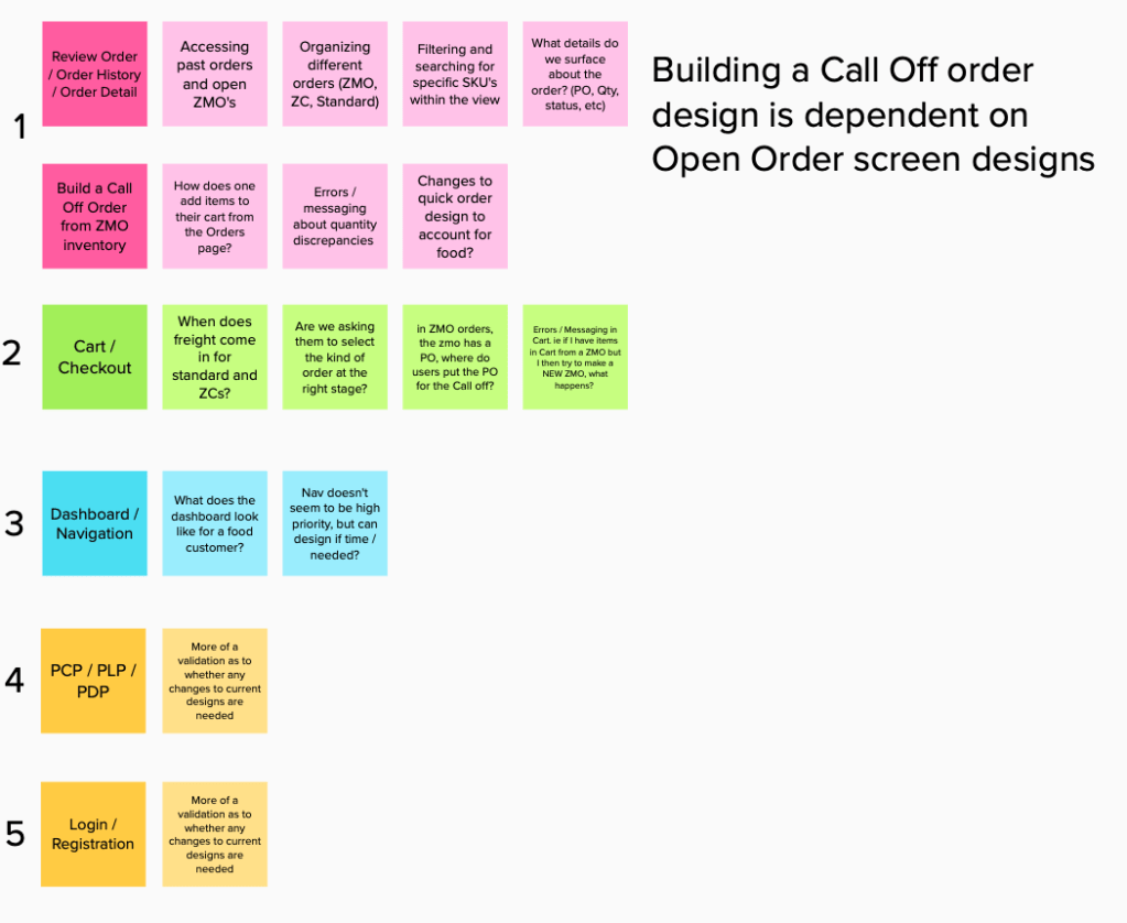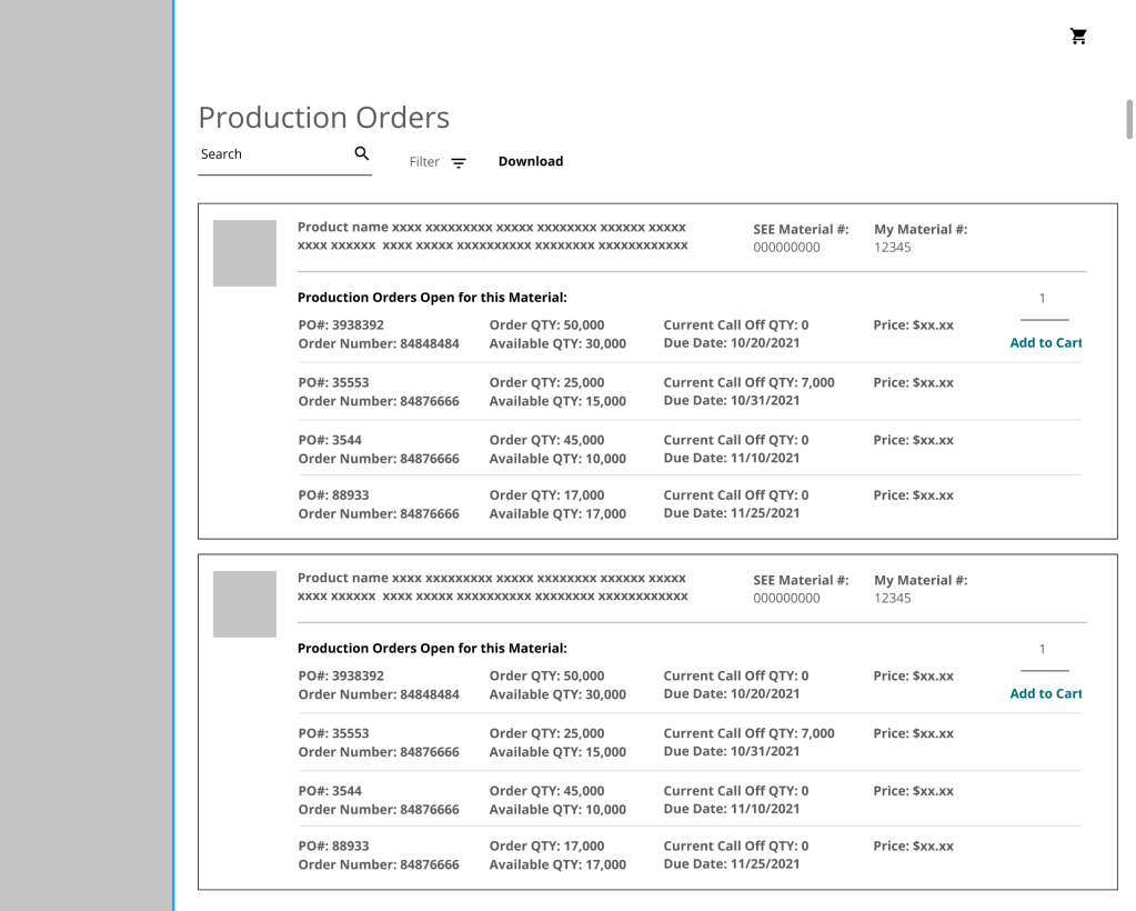 From there, the next step was taking the information to the wire-framing stage. I worked closely with Customer Service to better understand the necessary information that was displayed for the relationship between Production Orders and Call Offs and what data was important to the user. This gave me the groundwork for the first iteration of wireframes.
