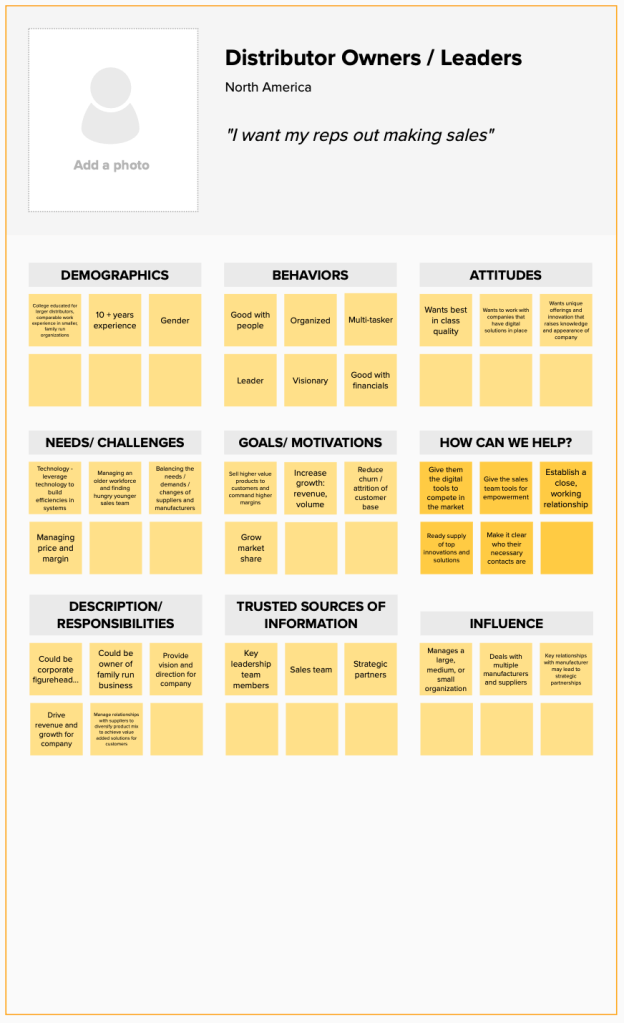 - Interviewed sales reps to build up personas.
