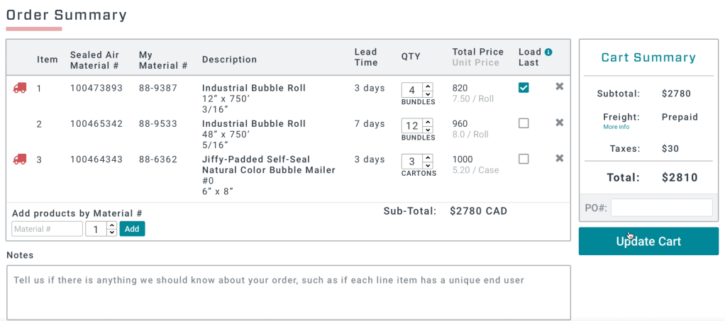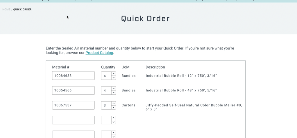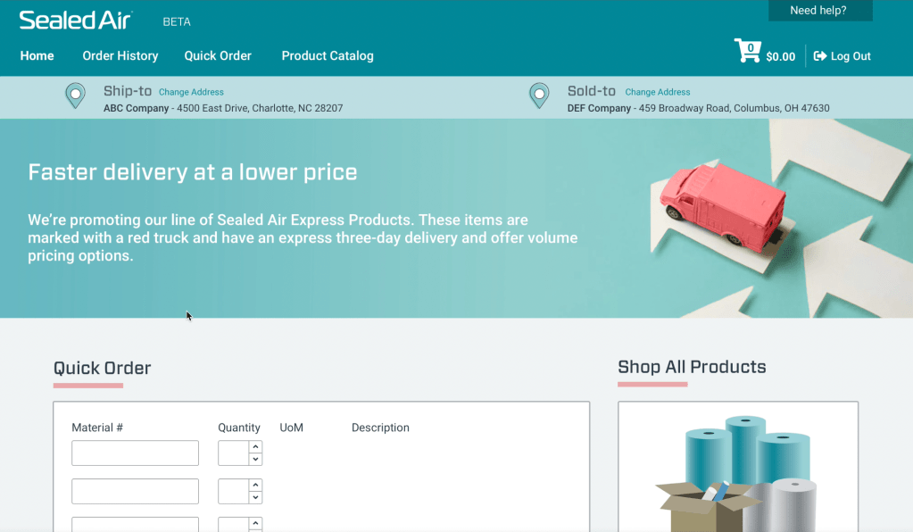 Create a tool that would allow our distribution partners to buy Sealed Air products online, reducing the load on Customer Service and increasing the buyer’s visibilty to the order fulfillment process.