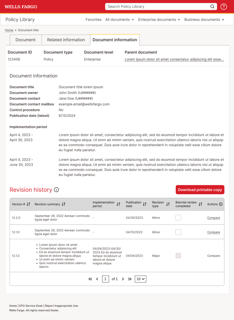 - Defines Enterprise and Business documents. Dividing documents in these categories is how Wells Fargo categorizes their documents, but it’s not lingo that’s understood across the company.